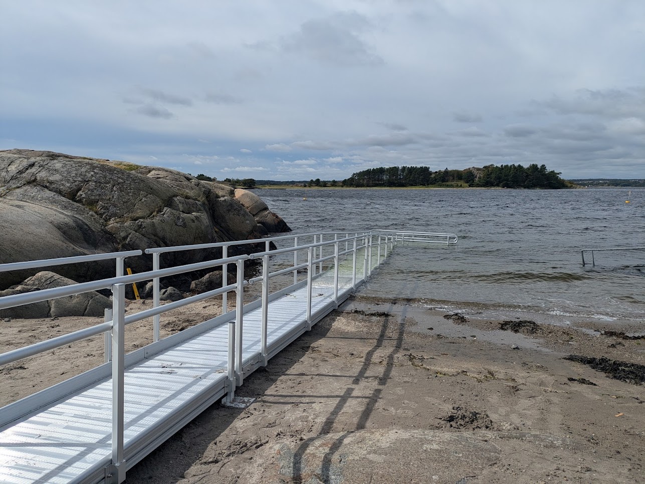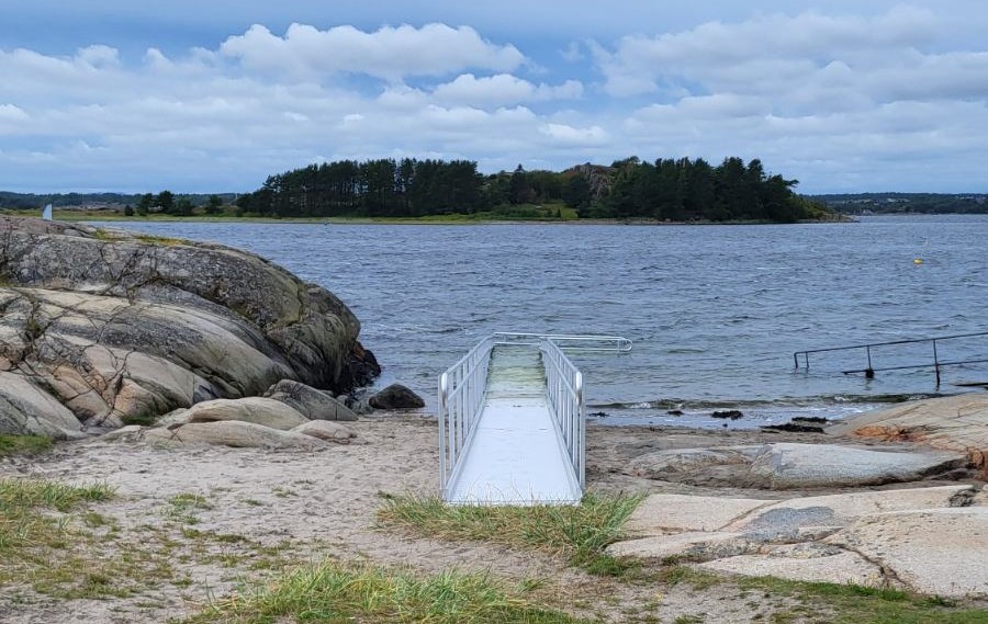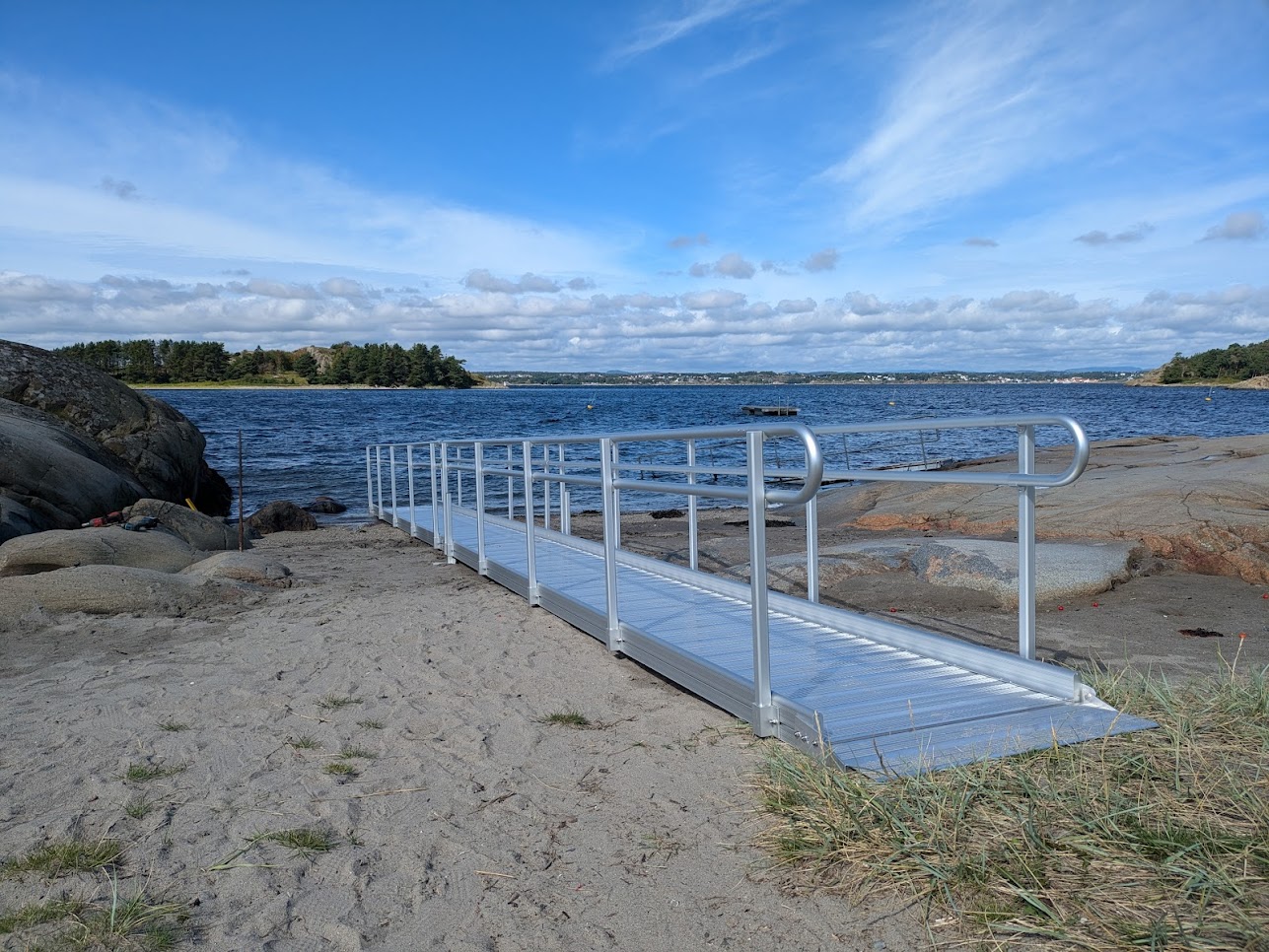 Vi har nylig levert og montert denne HC-baderampen i aluminium ved Langeby friområde på Vesterøya for Sandefjord Kommune.