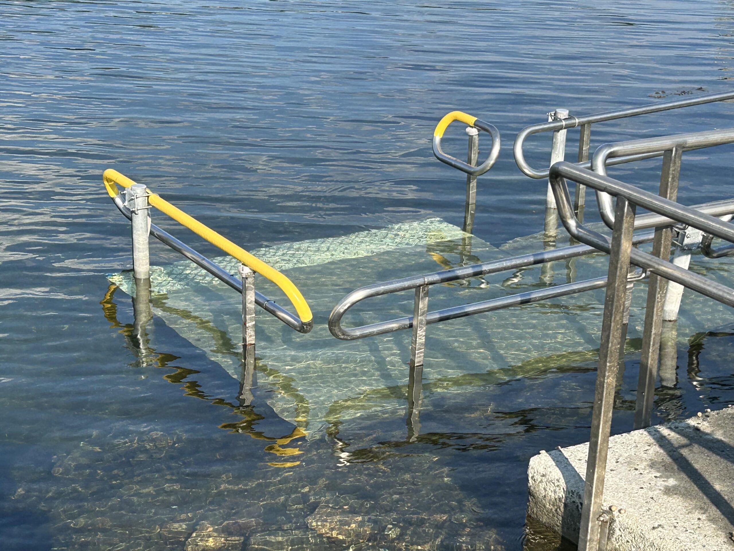 HC-baderampen er på betongdekke og overdekket til alle deler til håndløper er i syrefast stål.