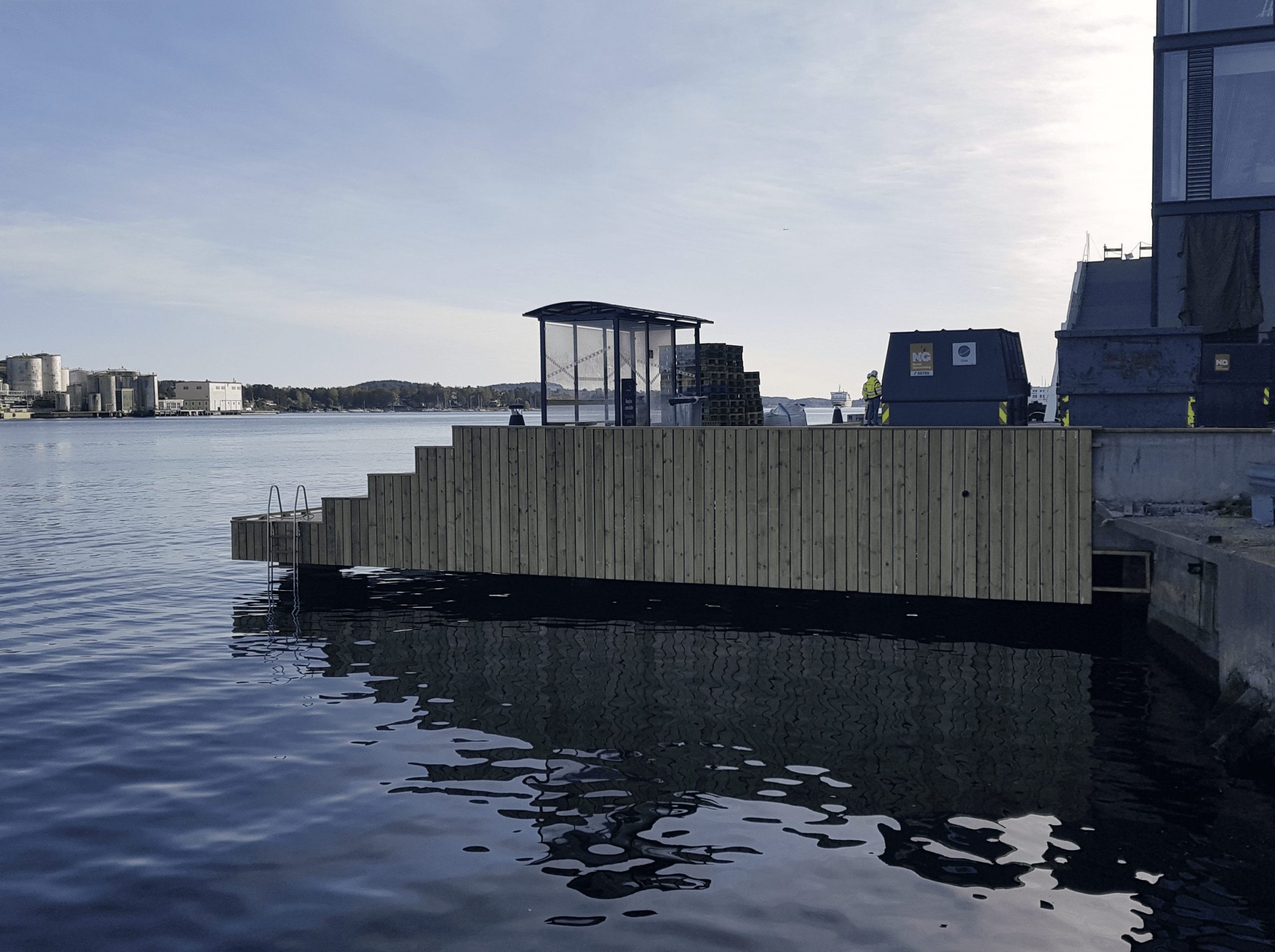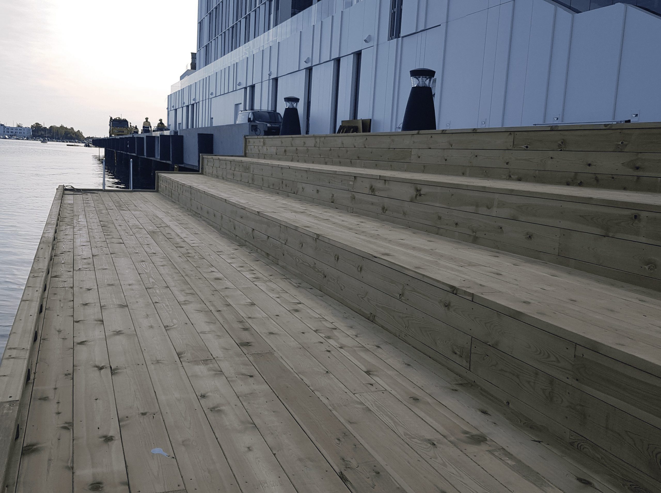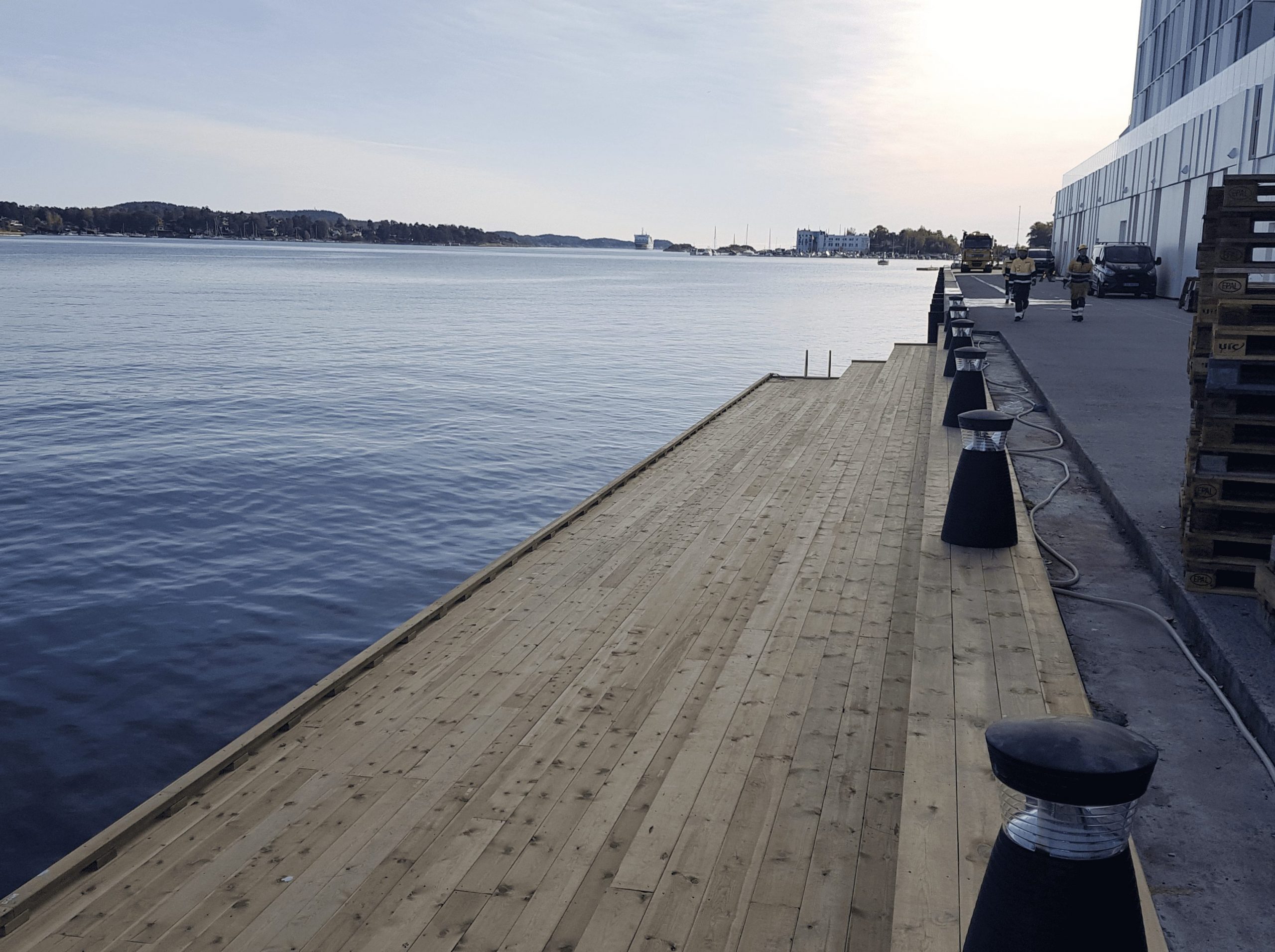 Kaifront – Jotun Kort beskrivelse om prosjektet Kle inn kaifront og bryggeamfi med tredekke og bryggeskjørt.