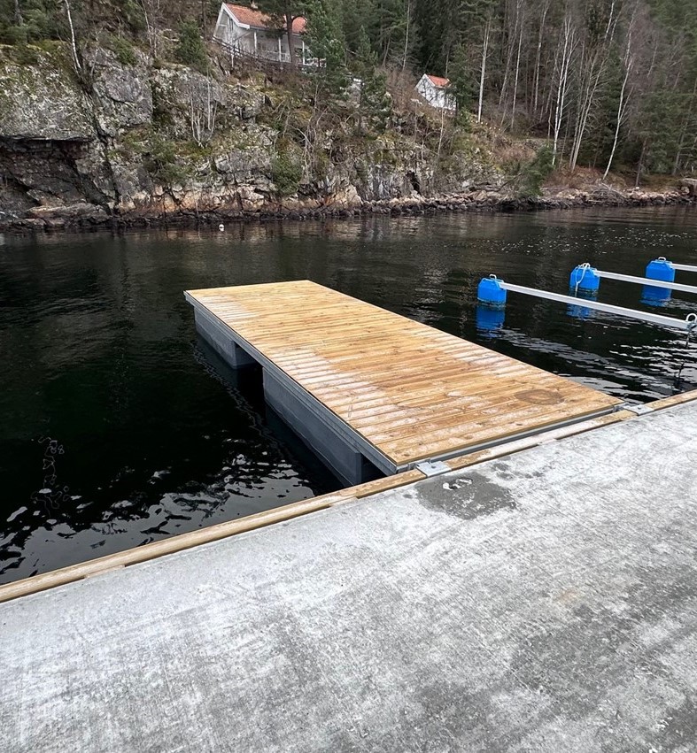 Før jul fikk Alværn Småbåthavn et nytt anlegg!Prosjektet omfattet en betongflytebrygge på 50 meter lengde og 3 meter bredde, samt en 6 meter lang landgang med rekkverk på begge sider.
