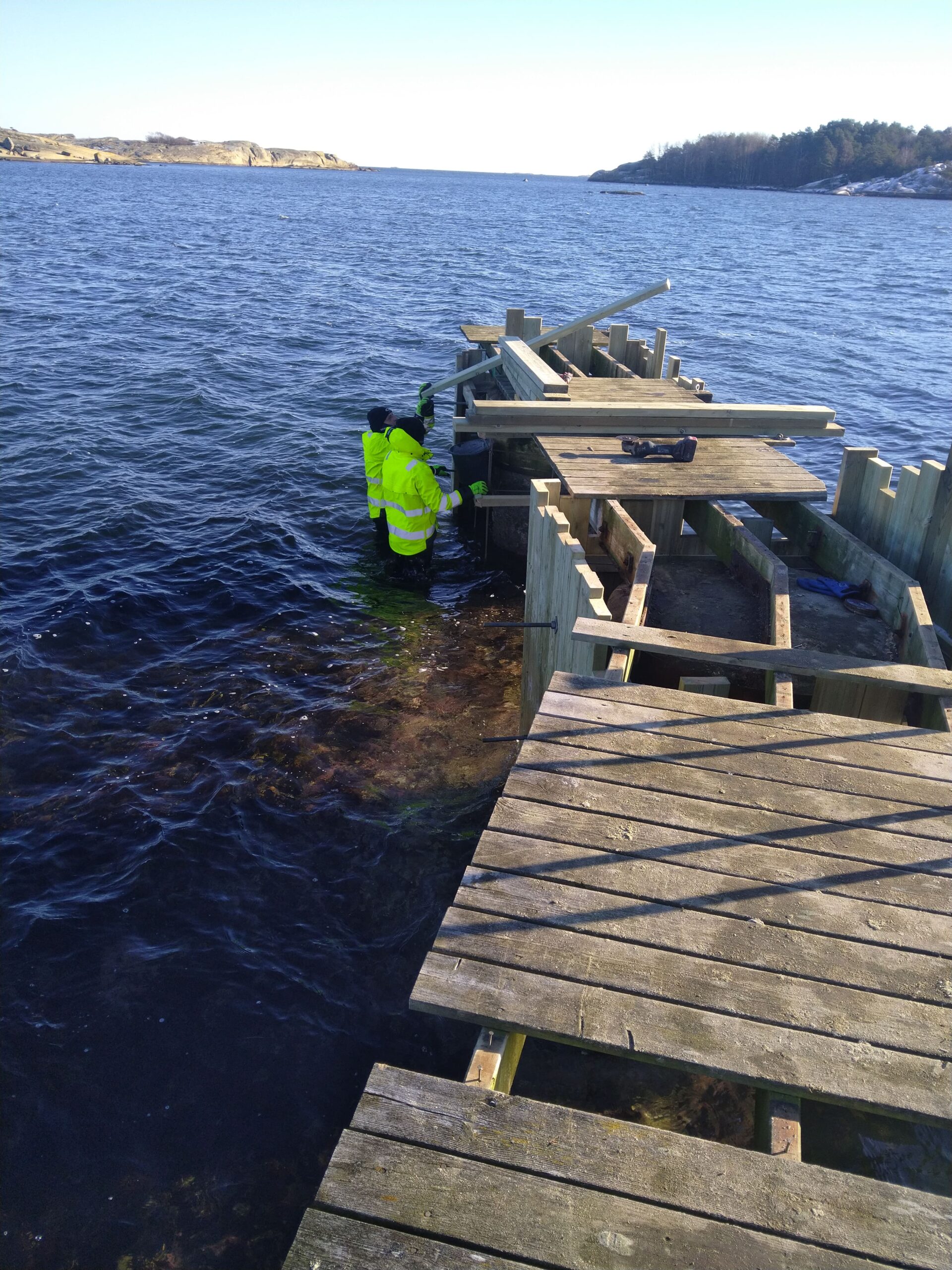 Ytterst på brygga har vi støpt rundt to gamle fundamenter for ekstra styrke og stabilitet.